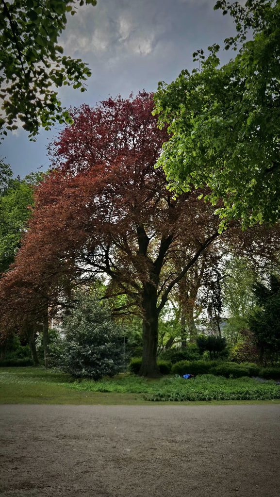 Majestic Red and Green Tree in Park – Free Stock Image